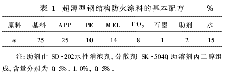 [摘要]以水為溶劑制備超薄膨脹型鋼結(jié)構(gòu)防火涂料,有利于環(huán)保和節(jié)約成本。以垂直燃燒法評價了研制的防火涂料的耐火性能,研究了環(huán)氧改性丙烯酸乳液和苯丙乳液作基料的復(fù)配比例和用量對耐火性能的影響。試驗顯示,環(huán)氧改性丙烯酸與苯丙乳液質(zhì)量比為2∶1,基料用量為25%時,防火涂料的性能最佳。通過正交試驗研究了P-C-N膨脹阻燃體系配比對涂層耐火性能的影響,得到最佳配比為m(聚磷酸銨)∶m(季戊四醇)∶m(三聚氰胺)=5∶2∶3。通過熱重和差熱分析比較了添加無機阻燃劑對涂層防火性能的影響,并對防火涂料進行了熱分析。結(jié)果表明:涂料各項性能符合GB14907-2002要求,當(dāng)涂層厚度為2.2mm時,耐火時間達到90min。 [關(guān)鍵詞]超薄型防火涂料;鋼結(jié)構(gòu);耐火性能;環(huán)氧丙烯酸乳液;苯丙乳液;無機阻燃劑 0前言 目前,鋼結(jié)構(gòu)防火涂料朝著多功能、阻燃性、環(huán)保友好方向發(fā)展[1]。鋼結(jié)構(gòu)水性防火涂料降低了涂料成本,保護了環(huán)境,是極佳的環(huán)保型涂料[2]。超薄膨脹型鋼結(jié)構(gòu)防火涂料具有裝飾性好、質(zhì)量輕薄、便于施工、適應(yīng)范圍廣等優(yōu)點,不僅適用于大型承重鋼結(jié)構(gòu),也適用于表面積較小的非承重型結(jié)構(gòu),是未來的發(fā)展方向之一[3]。環(huán)氧樹脂提高丙烯酸酯涂膜的粘接能力,而苯丙乳液具有更強的發(fā)泡能力。本工作以水為溶劑,采用環(huán)氧丙烯酸乳液和苯丙乳液組合作基料,添加無鹵化阻燃劑制備了超薄型鋼結(jié)構(gòu)水性防火涂料,考察了基料、膨脹阻燃體系的最優(yōu)化條件,并對優(yōu)化條件下所得涂料的耐火性能進行了研究。 1·試驗 1.1試驗材料和儀器 以環(huán)氧改性丙烯酸乳液和苯丙乳液為基料;聚磷酸銨(APP),季戊四醇(PER),三聚氰胺(MEL),鈦白粉(TiO2),可膨脹石墨(100目),丙二醇等;SD-202水性消泡劑;分散劑SK-5040;KFD-1000金屬清洗劑;以上均為工業(yè)品。研體,鋼片,煤氣噴燈;SDT2960Simul-taneousDSC-TGA差熱-熱重聯(lián)用分析儀。 1.2防火涂料的制備 將表1中的固體粉末置于SEJ-400型高速分散機中均勻研磨30min,至規(guī)定細(xì)度放入燒杯中;將水和助劑依次加入其中,最后加入基料乳液,攪拌約30min后,常溫下密封,靜置24h即得到防火涂料。