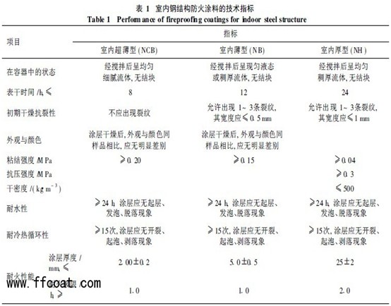 表1 室內(nèi)鋼結構防火涂料的技術指標 |